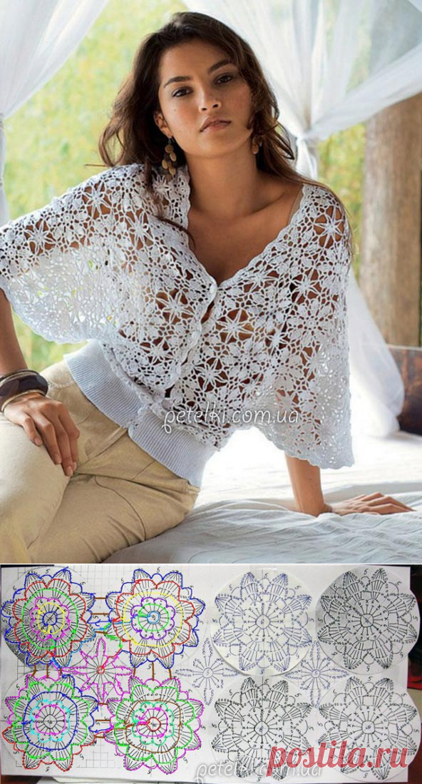 Ажурный жакет безотрывным вязанием - Crochet Modnoe Vyazanie