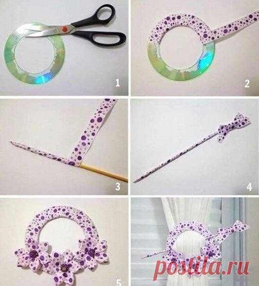 Хотели выбросить старые диски? Не спешите. Из них можно сделать оригинальный подхват для штор