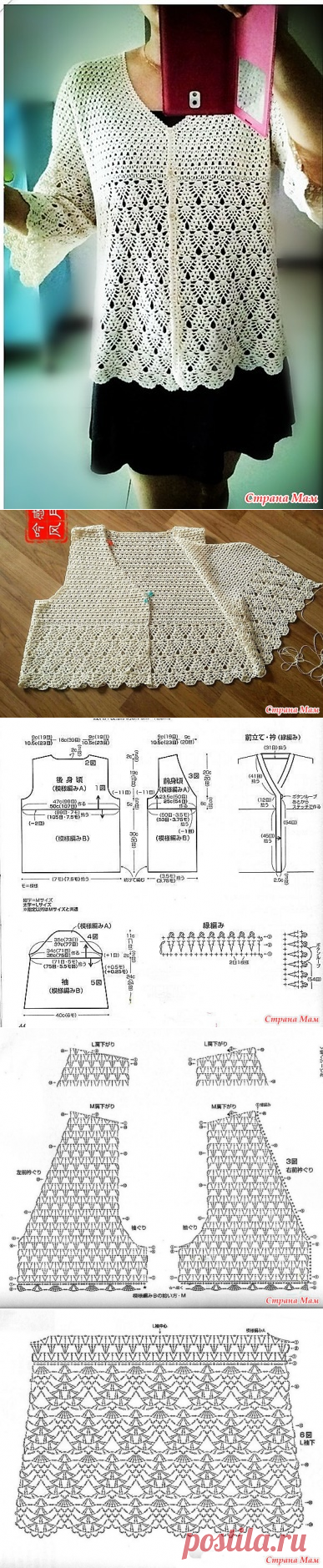 Ажурный жакет с узором ананас. Крючок. - ВЯЗАНАЯ МОДА+ ДЛЯ НЕМОДЕЛЬНЫХ ДАМ - Страна Мам