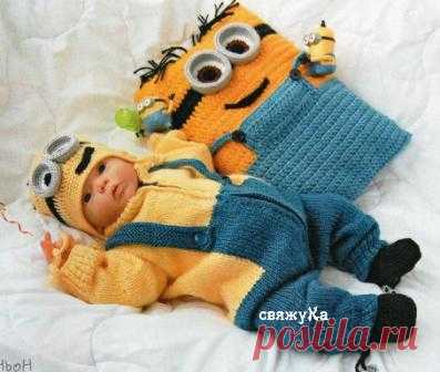 Вязаный комбинезон спицами для малыша