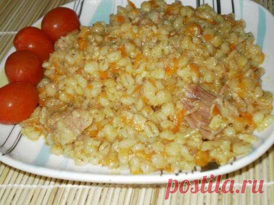 С детства люблю такую перловку,еще бабушка такую готовила.Я ее делала на свиной тушенке.Для начала подготовим необходимые продукты : почистим пару больших луковиц,пару зубчиков чеснока и пару морковок.Возьмем стакан перловки,тщательно ее промоем,зальем водой и поставим вариться минут на 10..Из тушенки ложкой выберем весь жир,положим его на сковородку, растопим и на этом жире обжарим чеснок и лук с морковкой,если вам повезет и жира будет в банке мало,то добавим растительного ма