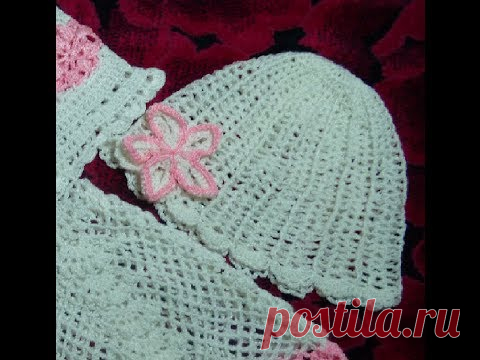 Шапочка летняя детская девочке 6 мес крючком. - YouTube