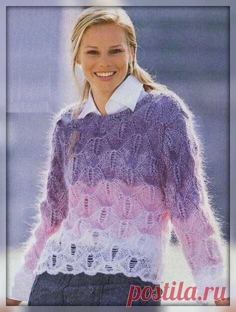 Дизайнерский пуловер на весну "Прохладный ветерок" - описание и схема вязания спицами - Самоделкино.Инфо - своими руками. Фото, идеи и чертежи Чудесный ажурный пуловер бокси с рукавами три четверти по всем направлениям отвечает нашему вкусу и хорошо смотрится как с легкими брюками или модными джинсами, так и с кожаной мини-юбкой.