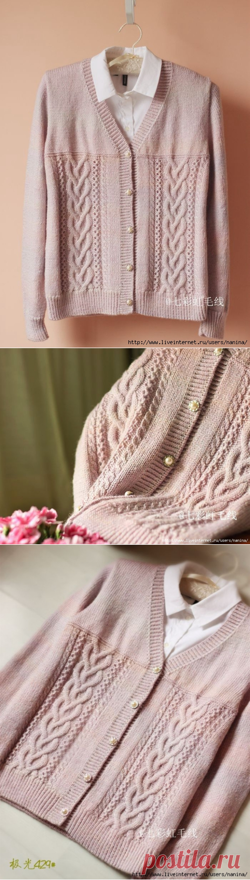 Жакет с сочетанием узоров из «кос» - Klubok.ru.com