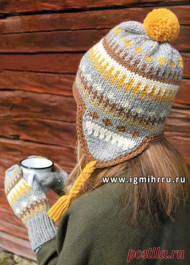 ШАПОЧКА-УШАНКА И ВАРЕЖКИ С ОРНАМЕНТОМ.