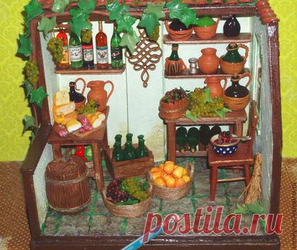 Купить Винная лавка - ручная работа, румбокс, миниатюра, миниатюрная мебель, кукольный дом