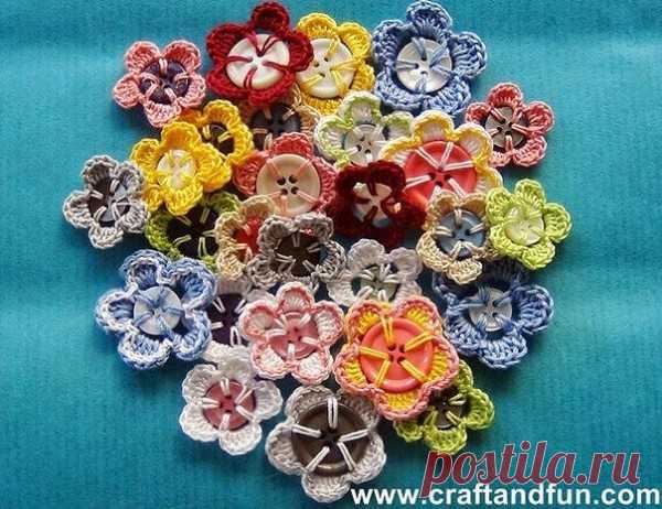 Вяжем цветочки крючком. Мастер-класс и схема. #крючок #вязаные_идеи