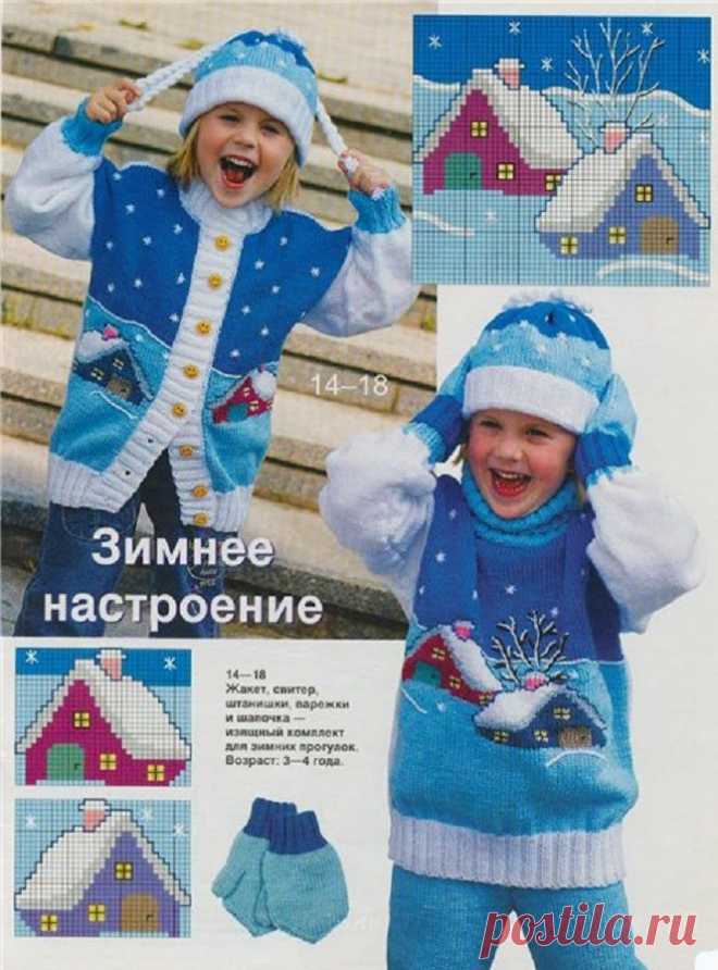 Комплект "Зимнее настроение": жакет, свитер, штанишки, варежки и шапочка :: Crochet and Knitting