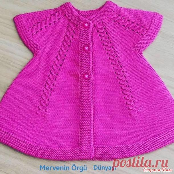 Детская накидка вяжется спицами фантазийным узором из шерстяной пряжи бирюзового цвета. Чтобы связать такую накидку, нужно совсем немного времени.