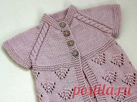 Вам потребуется: пряжа Sirdar Snuggly Baby Bamboo DK (80% бамбук, 20% шерсть; 95 м/50 г) - 250 [300:350] розового цвета; 5 [5:6] пуговиц; спицы № 3,25mm и № 4mm.