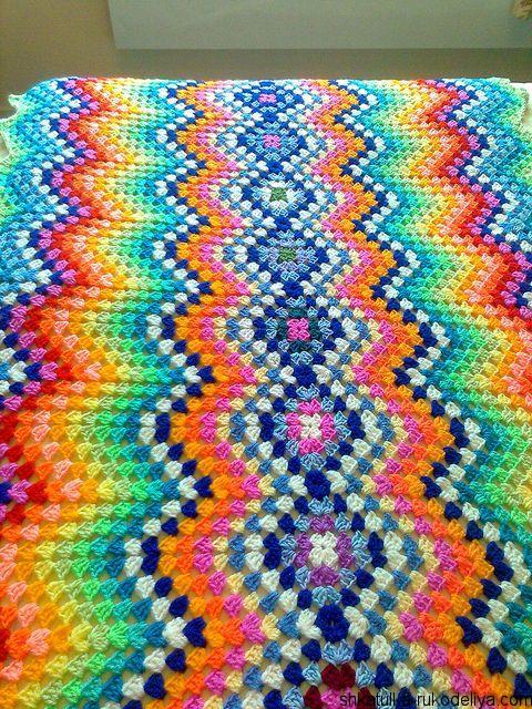 Плед “зигзаг” крючком Яркий плед крючком узором зигзаг. Пледы из остатков пряжи крючком