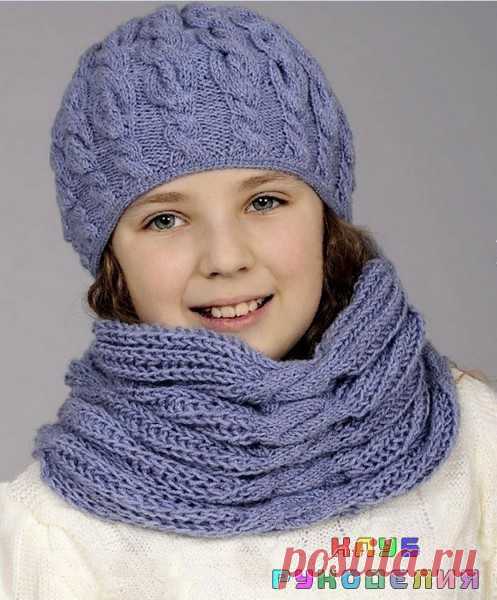 Шапка и шарф с узором косы - Клуб рукоделия Размер: окружность головы 55 см, высота шапочки 22 см. Ширина шарфа 50 см, длина 120 см. Вам потребуется: 300 г пряжи (50% шерсть, 50% акрил, 280 м/100 г)