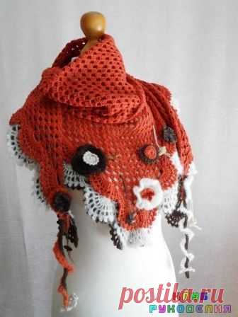 Шаль в стиле бохо - Клуб рукоделия Шаль связана по схеме. Кайма трехслойная, но связана по одной и той же схеме: 1 ряд - *5 возд.п. 1 ст/бн под каждую возд. п. предыдущего ряда* и так до кон