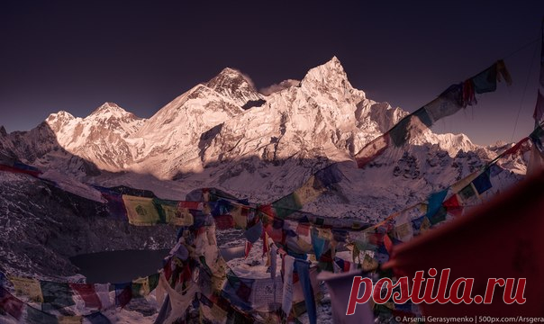 Эверест на закате. Автор фото — Арсений Герасименко: nat-geo.ru/photo/user/49955/