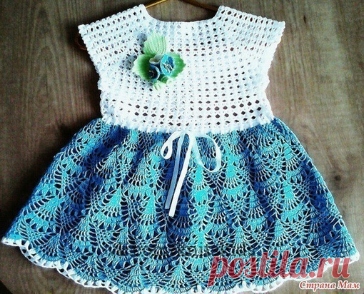 Детское платье спицами. - Вязание для всех Вяжем красивое детское платье спицами. Платье получилось на 1 год, потом думаю убрать молнию и сделать шнуровку, получиться еще на год. Нитки я использовала, 100% хлопок Семёновская пряжа 430м/100г. Узор юбки вязала по схеме Набрала на спицы 210 петель и вязала два полотна в последнем ряду закрыла по 2 петли, следующем лицевом ряду закрыла еще по 2 петли, только через 2, т. е 2 вместе, 2 лицевые, 2 вместе, я замерила талию дочери ...