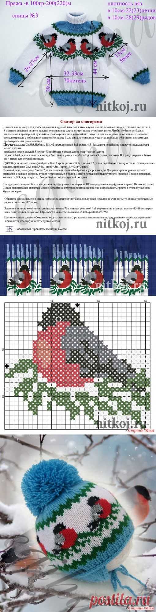 Детский свитер спицами "Снегири на снегу" » Ниткой - вязаные вещи для вашего дома, вязание крючком, вязание спицами, схемы вязания