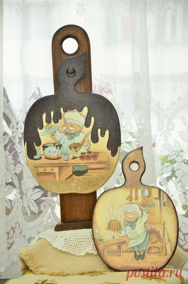 Комплект кухонных досточек выполнен в технике декупаж. Досточки могут быть прекрасным подарком к любому случаю прекрасным хозяйкам, близким друзьям и подарком для себя. Такой подарок наполнит уютом кухню одариваемого. Тематика может быть разной. Оговаривается отдельно