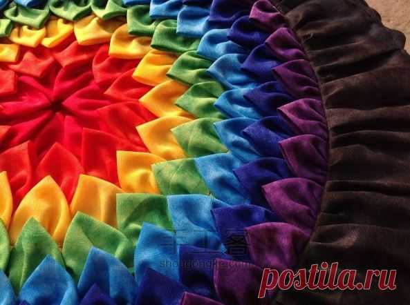Яркая подушка или пуфик в форме цветка из лоскутов — Рукоделие