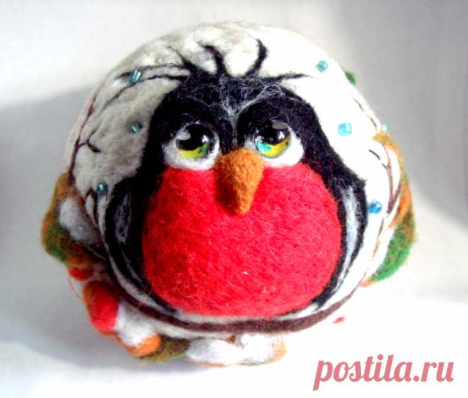 Кошелёчек-брелок на сумку " Снегирь ", ручная работа, мокрое валяние, глаза ручной работы стекло, вышивка мулине и бисер. От JU-Lio toys & .....