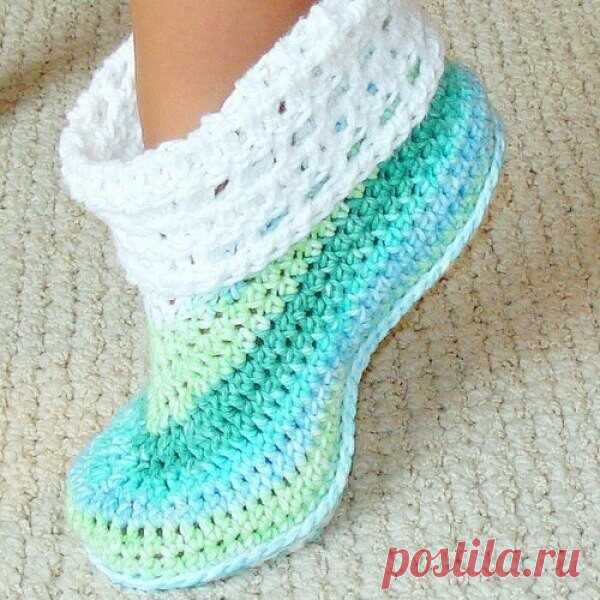 Красивые тапочки крючком. Описание | Вязаные крючком аксессуары Вяжем красивые тапочки крючком.Мыс — 5 рядов как на шапку, только прибавок поменьше (ориентироваться на ширину стопы).Далее плетеный узор.У меня есть описание на поворотные ряды.Если помудрить, можно придумать, как вязать по кругу.Или вязать так, а потом сделать аккуратный шов на...