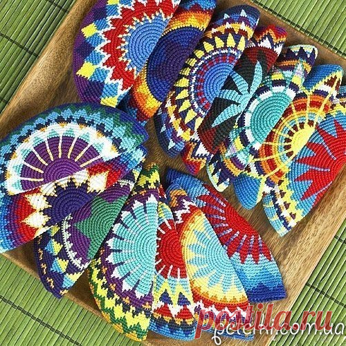 Жаккард крючком по кругу - Эфария В этой статье мы вам покажем и расскажем, как вязать жаккард по кругу крючком. Таким образом могут получится отличные сидушки на стулья или коврики. Важно знать, чтобы круг получался плоским и не давал волны, нужно соблюдать «Закон круга»: Согласно этому правилу нам требуется по 6 прибавок в ряду, но при вязании круга жаккардом прибавок делают