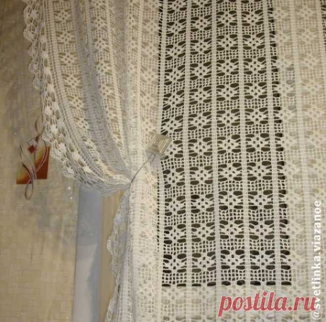 Занавески вязаные в стиле - филейное, квадраты, мотивы