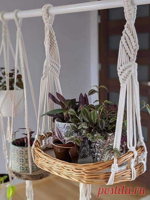 Простота узлов макраме помогает создавать уникальные по красоте вещи! Идеи декора - Сам себе мастер - 1 марта - 43085410341 - Медиаплатформа МирТесен Кашпо плетеное с помощью узоров макраме - какая это все таки красота! А какой простор для творческих решений, ведь можно не только плести обычные кашпо, но и использовать подручные вещи, вплетая их в композицию. А самое интересное то, что такие кашпо можно использовать не только для домашнего - 1 марта - 43085410341 - Медиаплатформа МирТесен