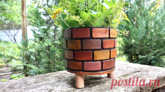 Все друзья приносят мне пластиковые ведёрки и просят сделать им такое же кашпо. А я только рада. Режу "кирпичики" и мастерю красоту | Шебби-Шик | Яндекс Дзен