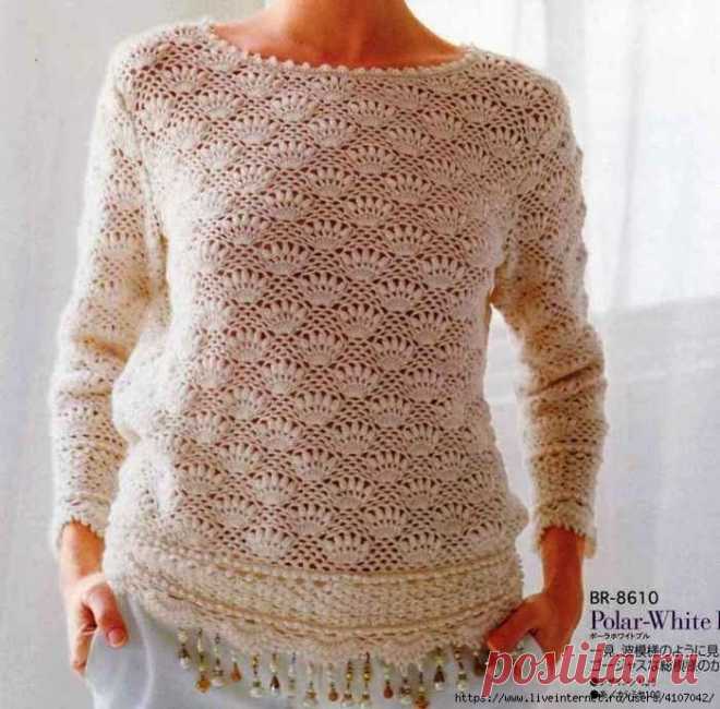 Белый ажурный джемпер с планкой на пуговицах. - Все в ажуре... (вязание крючком) - Страна Мам