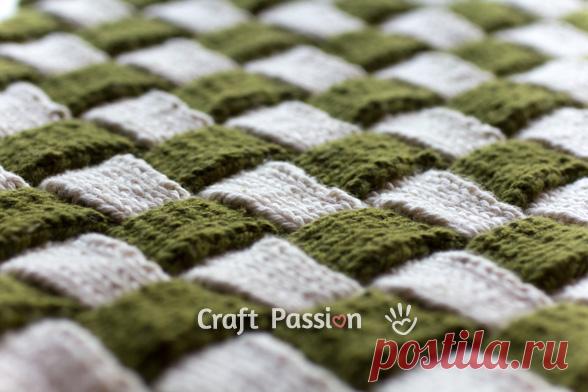 Графичное покрывало спицами из квадратов на knitweek.ru