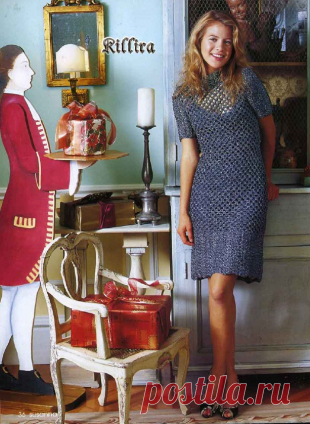 Нарядное платье с длинным рукавом. Крючок + спицы. Описание, схема