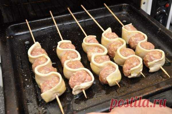 Шашлычки со слоёным тестом на шпажках - Простые рецепты Овкусе.ру