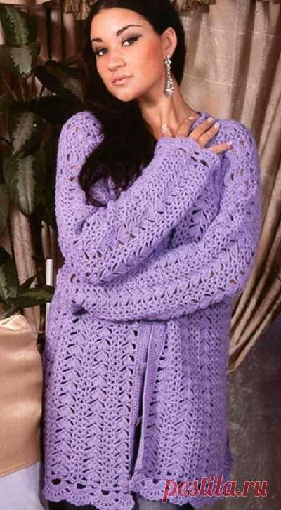 Вязание спицами и крючком: Сиреневый жакет с пуговицами