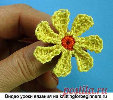 Начинаем вязать – Видео уроки вязания » Маленькая ромашка – Вязаные цветы – Урок №90