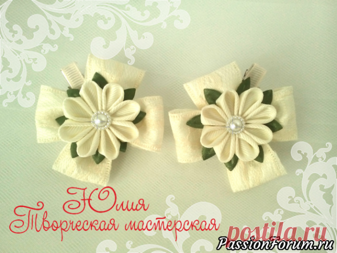 Канзаши. Шпильки для прически невесты. Мастер класс с фото