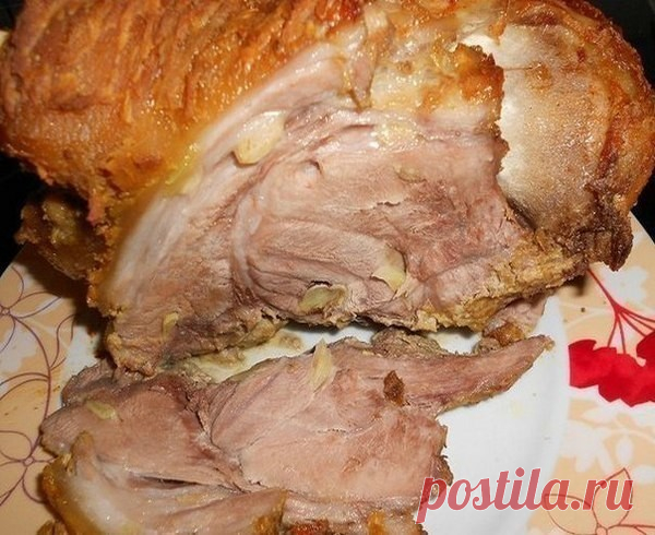 Рульку помыть, обсушить. Чеснок очистить и порезать на пластинки. Рульку нашпиговать: делать прокол ножом и вставлять туда кусочек чеснока. После натереть солью, перцем и намазать горчицей 1/2 б. Положить рульку в емкость, накрыть пленкой и оставить мариноваться на сутки или хотя бы на ночь, периодически переворачивая. После маринования обмазать ос...