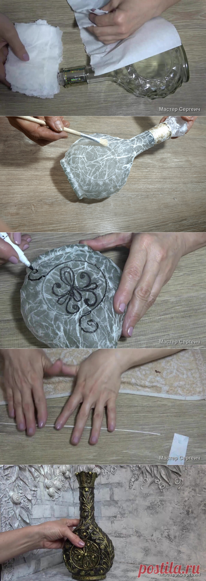 Берем бутылку, обычные салфетки и делаем настоящую красоту | Мастер Сергеич | Яндекс Дзен