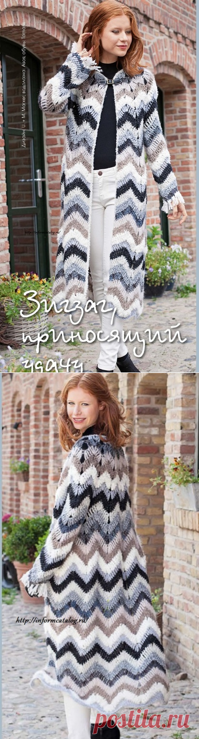 Меланжевое Пальто с Косами — Спицами | Ниточка
