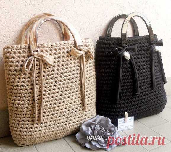 Модная сумка крючком из пряжи спагетти. Как связать сумку из пряжи спагетти