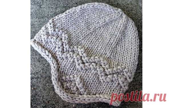 Шапка детская с узором из вьющихся кос. Текстовое руководство и схемы вязания спицами
