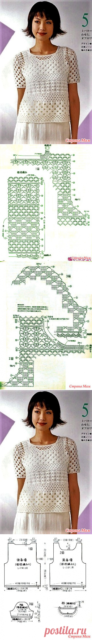 Кофточка ажурная из мотивов Пуловер ажурный с ромбиками Топ вязаный крючком на ажурной кокетке Блуза с ажурной кокеткой и каймой Кофточка ажурная с запахом Кофточка с кружевной кокеткой Кофточка крючком из отдельных полос Кофточка из бело-сиреневых квадратов Ажурная кофточка на круглой кокетке Кофточка ажурная. Узор Веера
