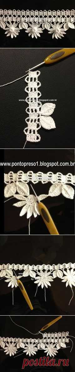 Очень красивая ажурная кайма связанная крючком (элементы коклюшечного кружева). | Any new stitches that inspire me