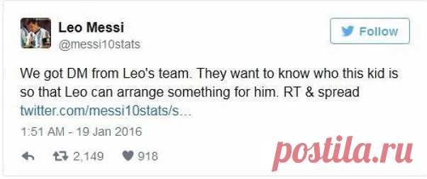 Месси разыскивает мальчика в футболке из пластикового пакета
