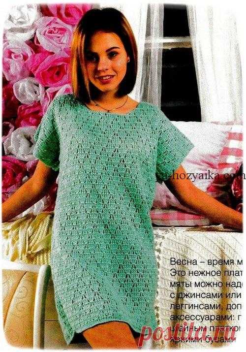 Летнее платье-туника крючком. Схема и выкройка для летнего платья крючком
