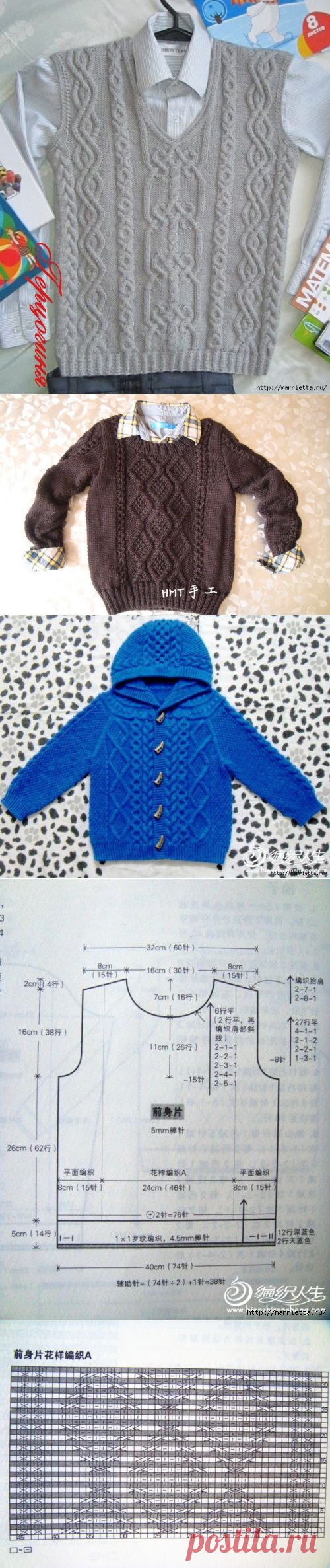 Жилет, жакеты, пуловер и шапочка спицами для мальчика.