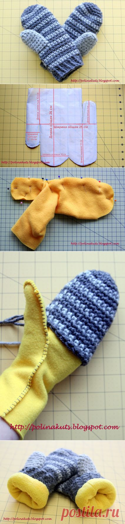 Очень подробный мастер-класс от Polina Kuts: Варежки крючком на флисовой подкладке