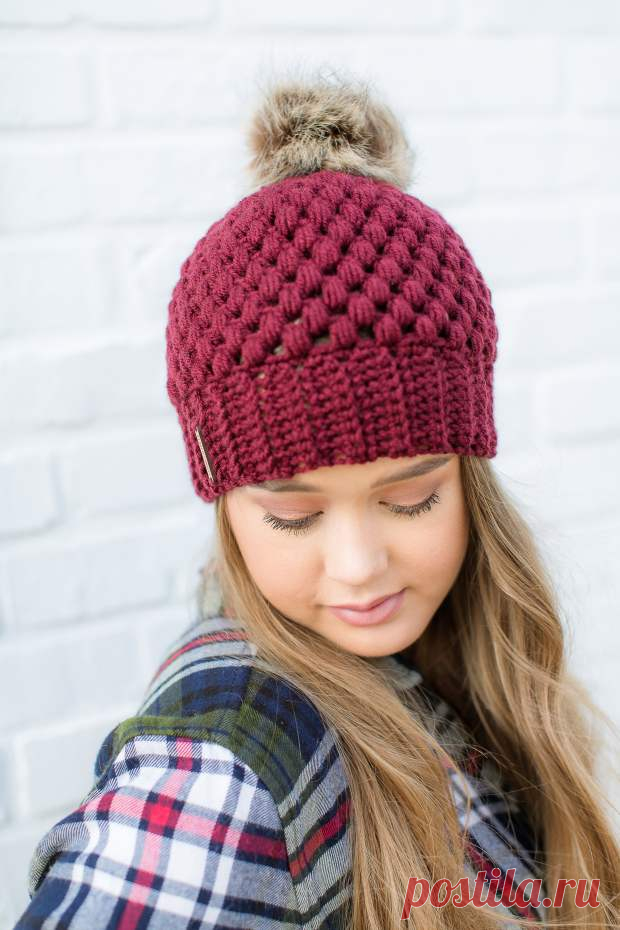Шапка крючком узором колоски пышными столбиками - Crochet - Modnoe Vyazanie