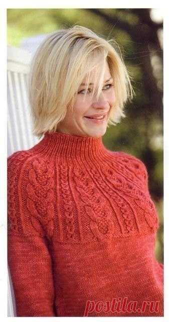 Вязать кофточки спицами сверху вниз с круглой кокеткой очень удобно и быстро. Выберите для вязания кокетки ажурный узор, расширяющийся вниз, он эффектно украсит кофточку. Кофточки при таком способе вязания – цельновязанные, без швов, они хорошо сидят, к тому же в процессе вязания вещь можно примерить и подогнать по фигуре.