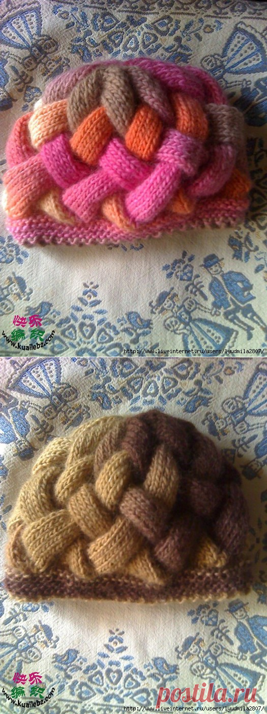 Красивая шапочка спицами . Схема шапки вязаной спицами плетеным узором | Домоводство для всей семьи.