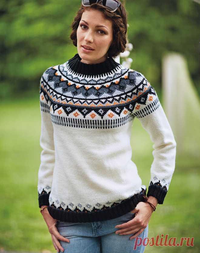 *Пуловер с круглой кокеткой от Дропс - Жаккард - Страна Мам